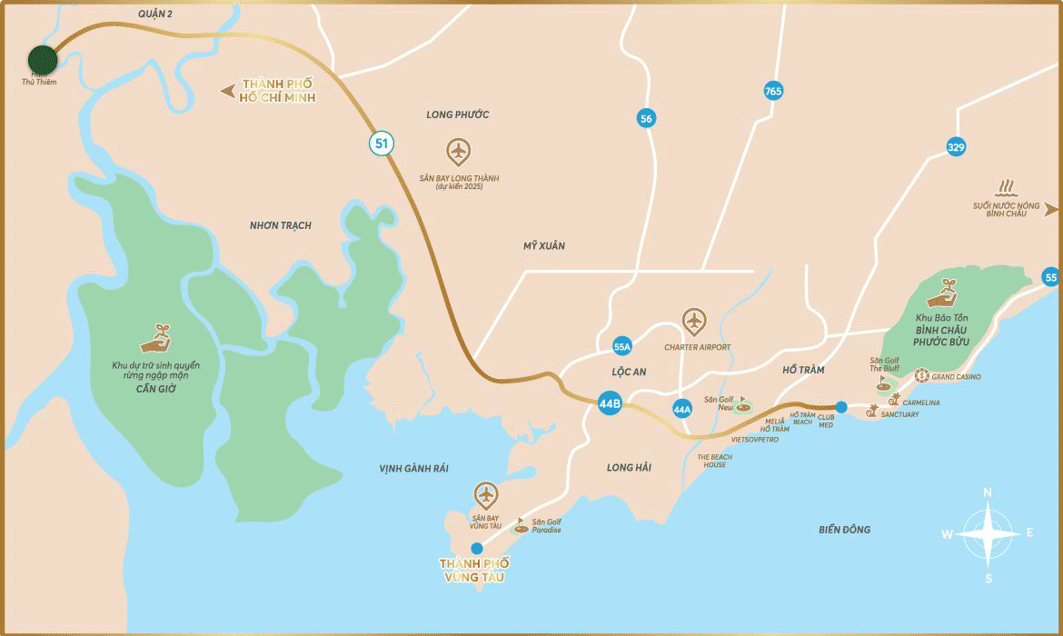 BĐS Hồ Tràm chính là sự cộng hưởng của nhiều giá trị tiềm năng: bãi biển dài trong xanh được thiên nhiên ưu ái, vị trí “vàng” tại Đông Nam Bộ và cơ sở hạ tầng được đầu tư đồng bộ, tập trung những siêu dự án nghỉ dưỡng tầm cỡ quốc tế.