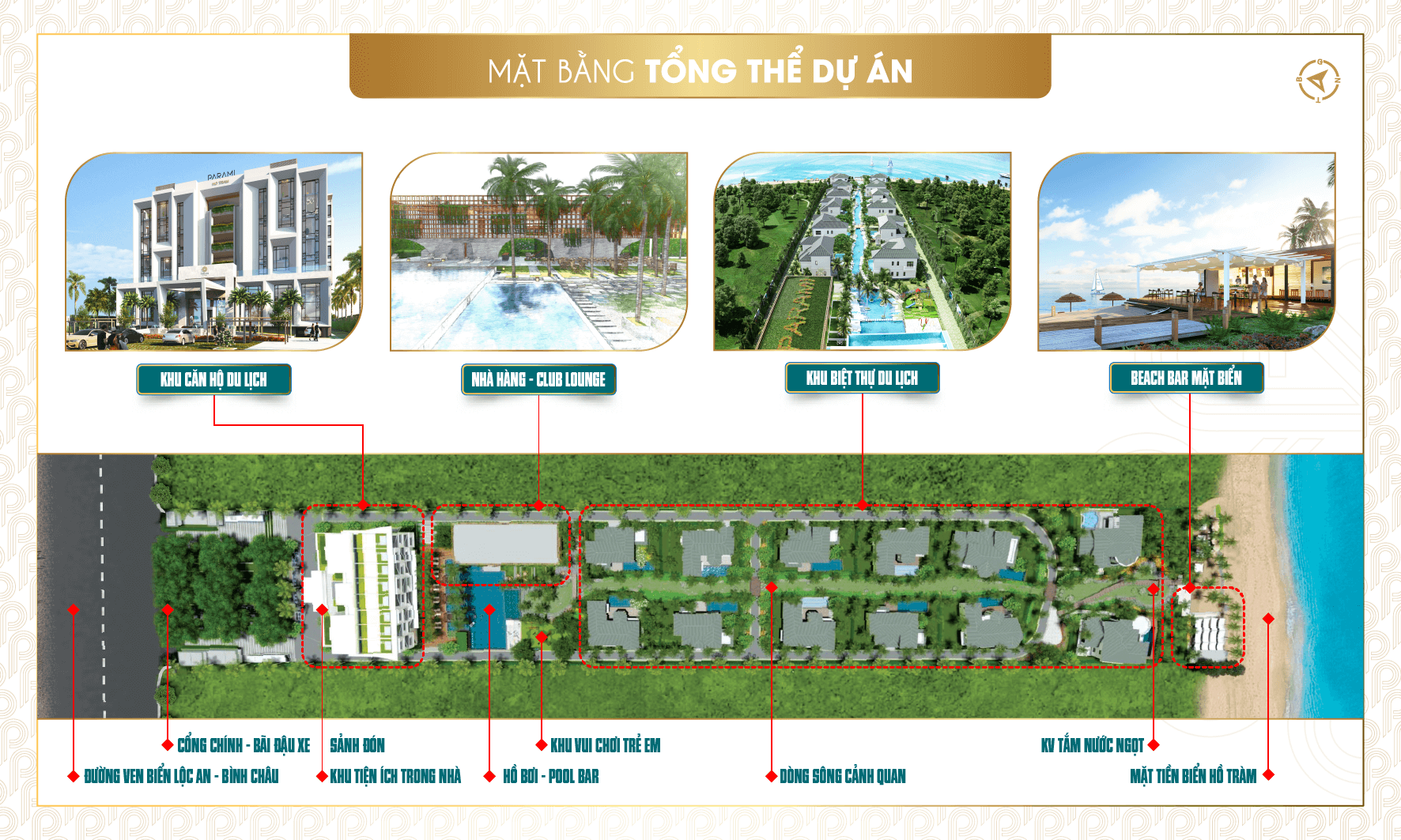 Thừa hưởng hạ tầng giao thông thuận lợi và thiên nhiên quyến rũ của Hồ Tràm, Parami là nơi bạn có thể hoàn toàn rời khỏi sự tấp nập, hối hả của nhịp sống phố thị nhưng vẫn tận hưởng trọn vẹn những tiện ích đẳng cấp trong khu vực như sân golf chuẩn quốc tế, casino, Safari, suối nước nóng Bình Châu…
